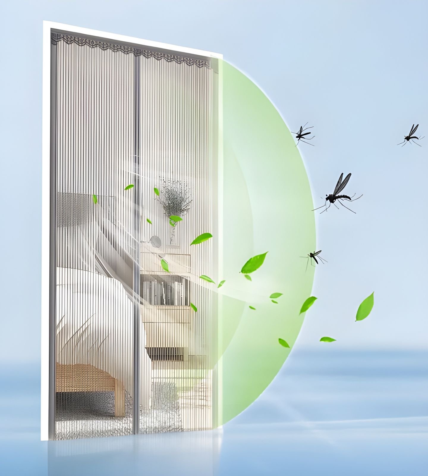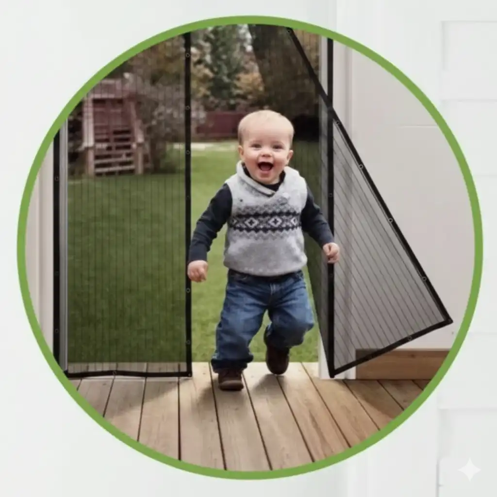 Hands-Free Mesh Curtain with Auto Snap Closure
