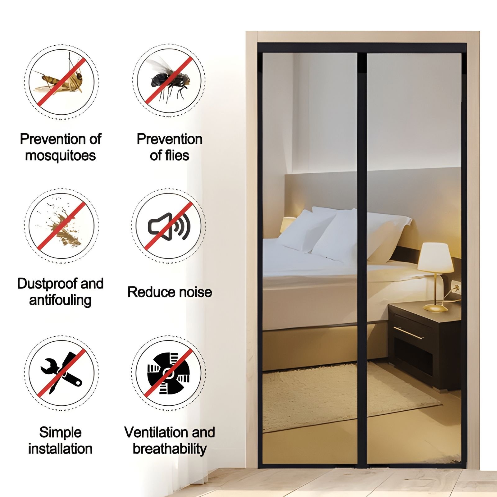 Keep fresh air in and pests out with this easy-to-install, durable, and automatic magnetic mesh.